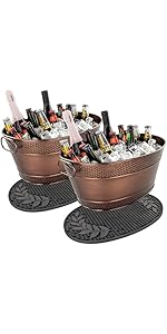 BREKX Copper Finish Drink Tubs + Insulated Party Mats for Parties, Bronze Ice...