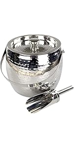 Insulated Stainless Steel Large Ice Bucket with Lid for Parties, Anchored Metal Ice & Beverage , Champagne Bucket for Extended Chill - 12-Quarts